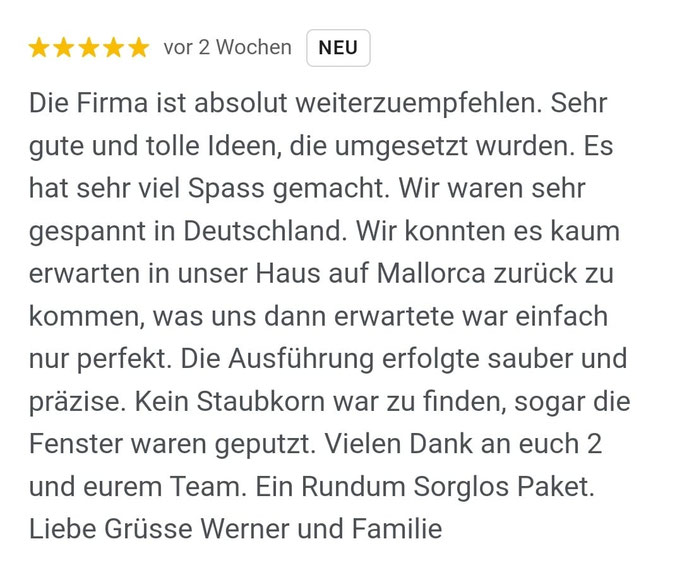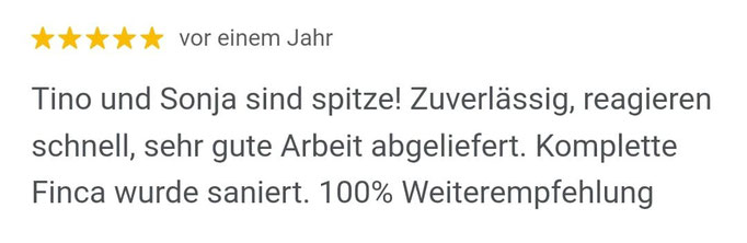 Unser Ziel ist es, erstklassige Qualität zu einem fairen Preis zu liefern und damit eine langfristige Kundenzufriedenheit zu erreichen. Zahlreiche erfolgreich abgeschlossene Projekte und viele zufriedene Eigentümer auf der Insel sind der Beweis dafür.